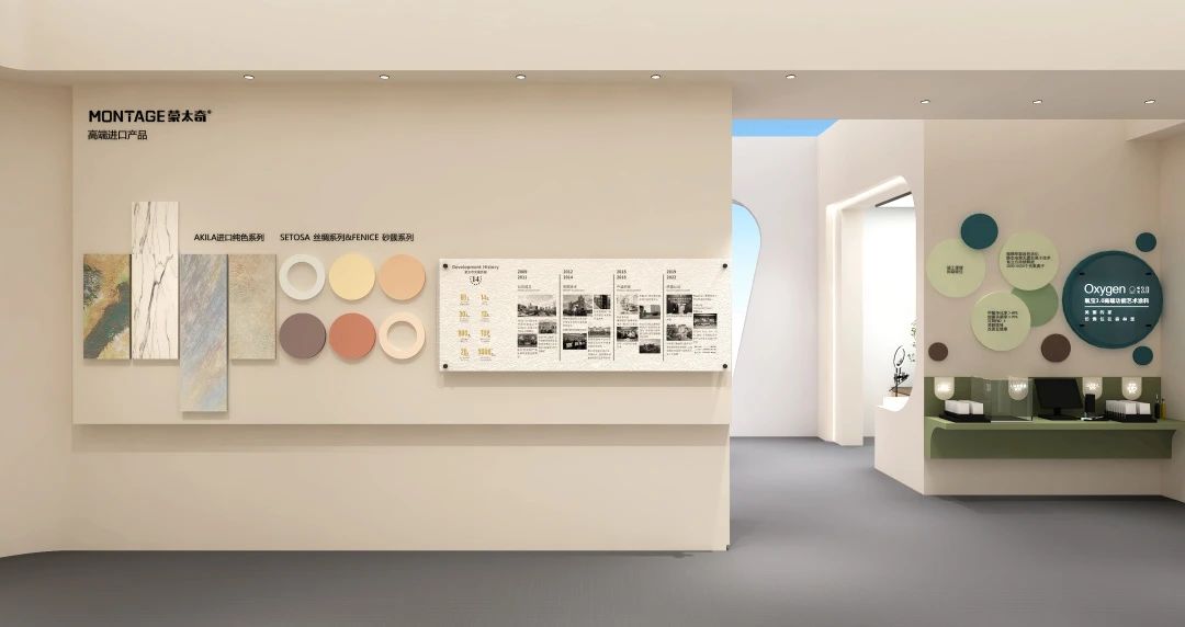 1)氧寶3.0高端功能藝術(shù)涂料體驗(yàn)區(qū):