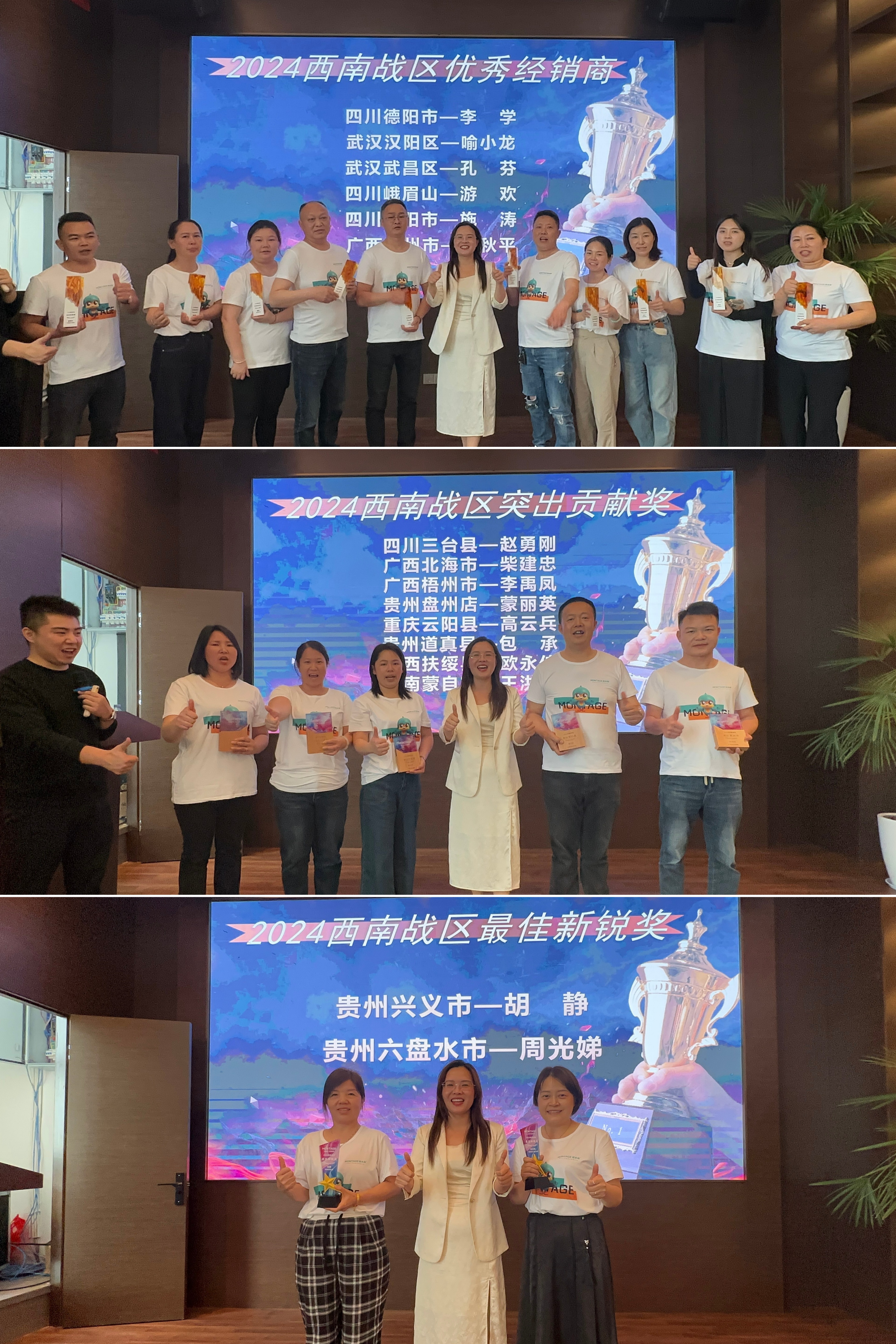 在特訓(xùn)營圓滿落幕的尾聲,蒙太奇總部分別為西南戰(zhàn)區(qū)優(yōu)秀經(jīng)銷商、突出貢獻(xiàn)商、最佳新銳商頒發(fā)榮譽(yù)獎項,以表彰其杰出貢獻(xiàn),為全國經(jīng)銷商樹立新的標(biāo)桿與奮進(jìn)方向。