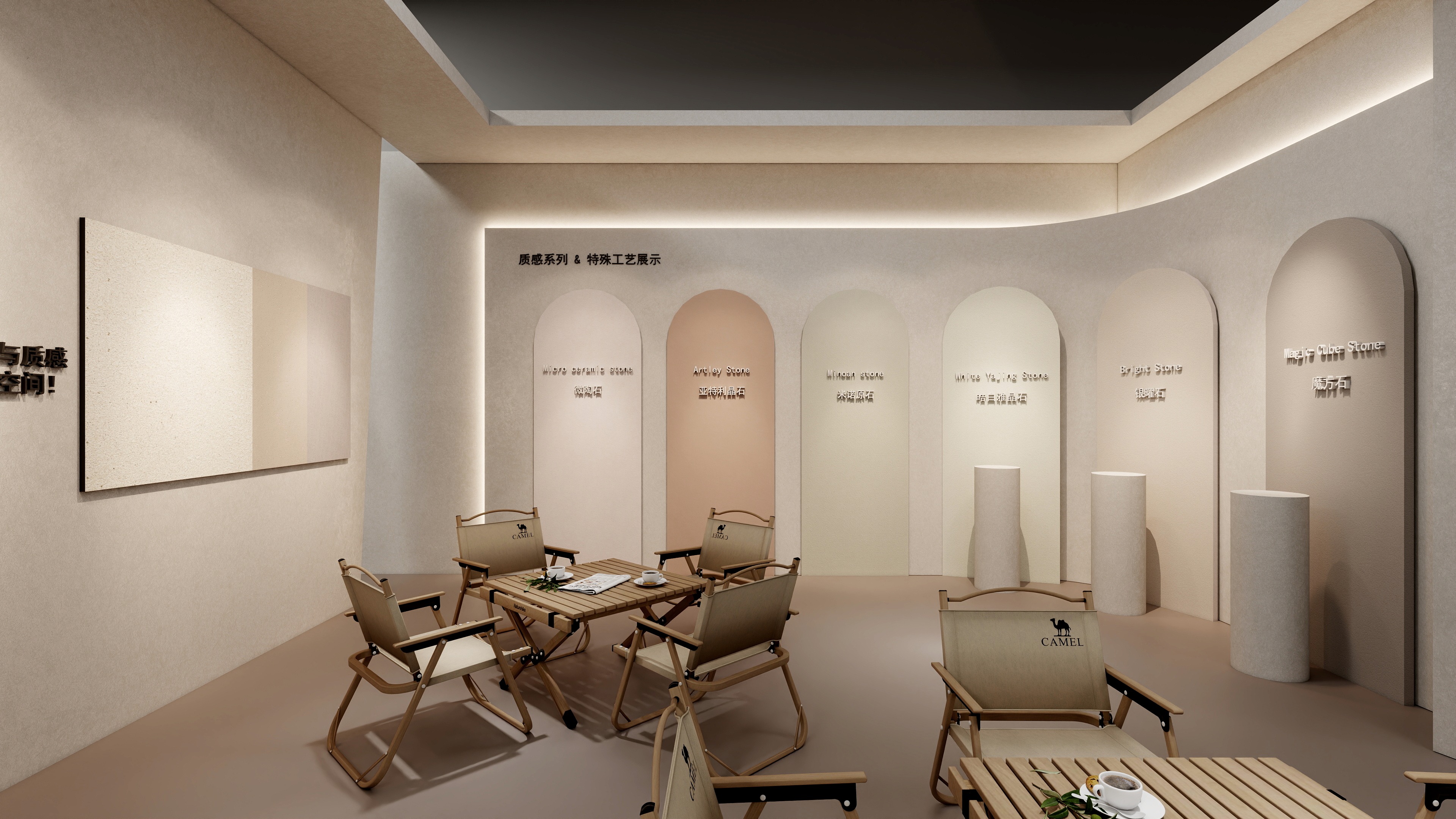 展館入口核心區(qū)域?yàn)槊商?/font>2025年度戰(zhàn)略級(jí)新品“魔方石”展示區(qū)。作為行業(yè)首款實(shí)現(xiàn)“免膩?zhàn)印ぐ僮冃Ч钡馁|(zhì)感藝術(shù)涂料,魔方石突破傳統(tǒng)施工局限,施工工期縮短30%以上。并且底面粗細(xì)可自由疊加,實(shí)現(xiàn)“一底多面”的創(chuàng)意可能?,F(xiàn)場(chǎng)將以“魔方”造型動(dòng)態(tài)展示“魔方72面,面面都驚艷”,直觀呈現(xiàn)魔方石如何以標(biāo)準(zhǔn)化流程實(shí)現(xiàn)個(gè)性化藝術(shù)效果,重新定義“高效與美學(xué)并存”的裝飾新標(biāo)準(zhǔn)。