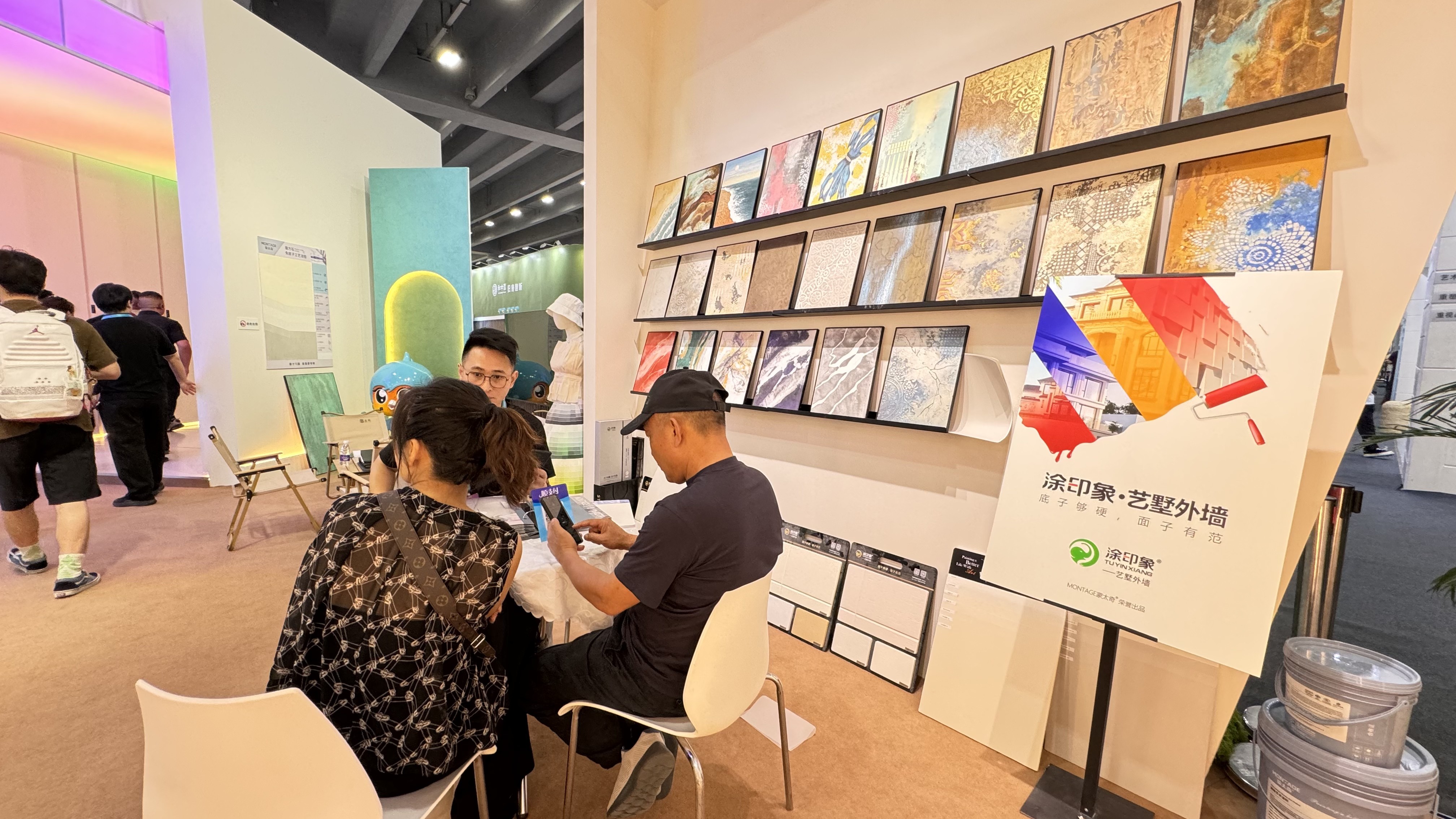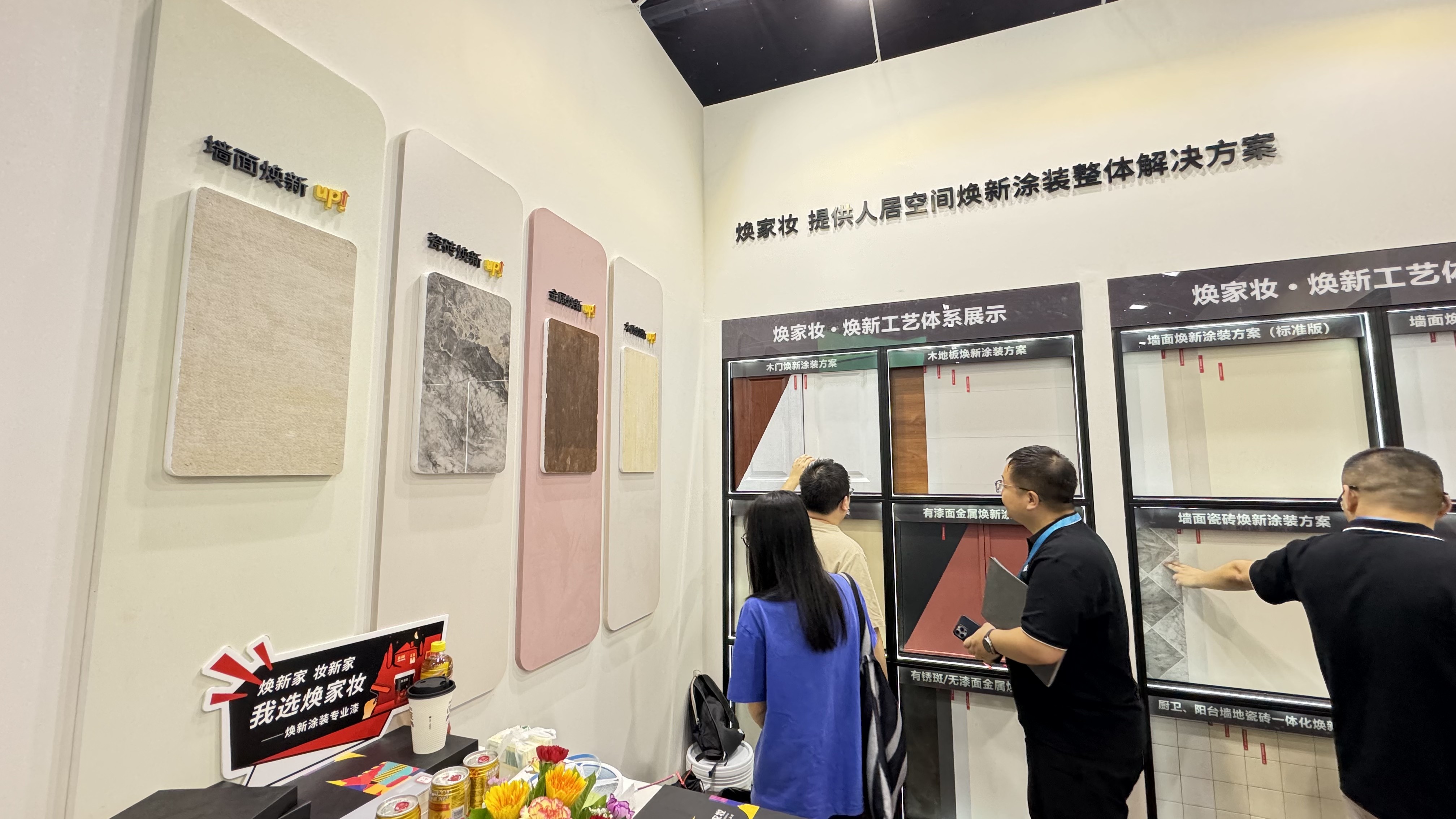 除了新品,本次展會上,蒙太奇還重磅推出"煥家妝"煥新涂裝與"涂印象"藝墅外墻兩大品牌。為助力合作伙伴發(fā)展,蒙太奇針對專賣渠道加盟、"煥家妝"煥新涂裝代理及涂印象·藝墅外墻銷售等需求,制定了一系列令人心動的合作政策與全方位賦能體系?;顒悠陂g,兩大新品牌體驗區(qū)與咨詢區(qū)人頭攢動,吸引了大批專業(yè)觀眾駐足體驗、洽談合作,現(xiàn)場咨詢量持續(xù)攀升,成為展館內(nèi)備受矚目的焦點區(qū)域。
