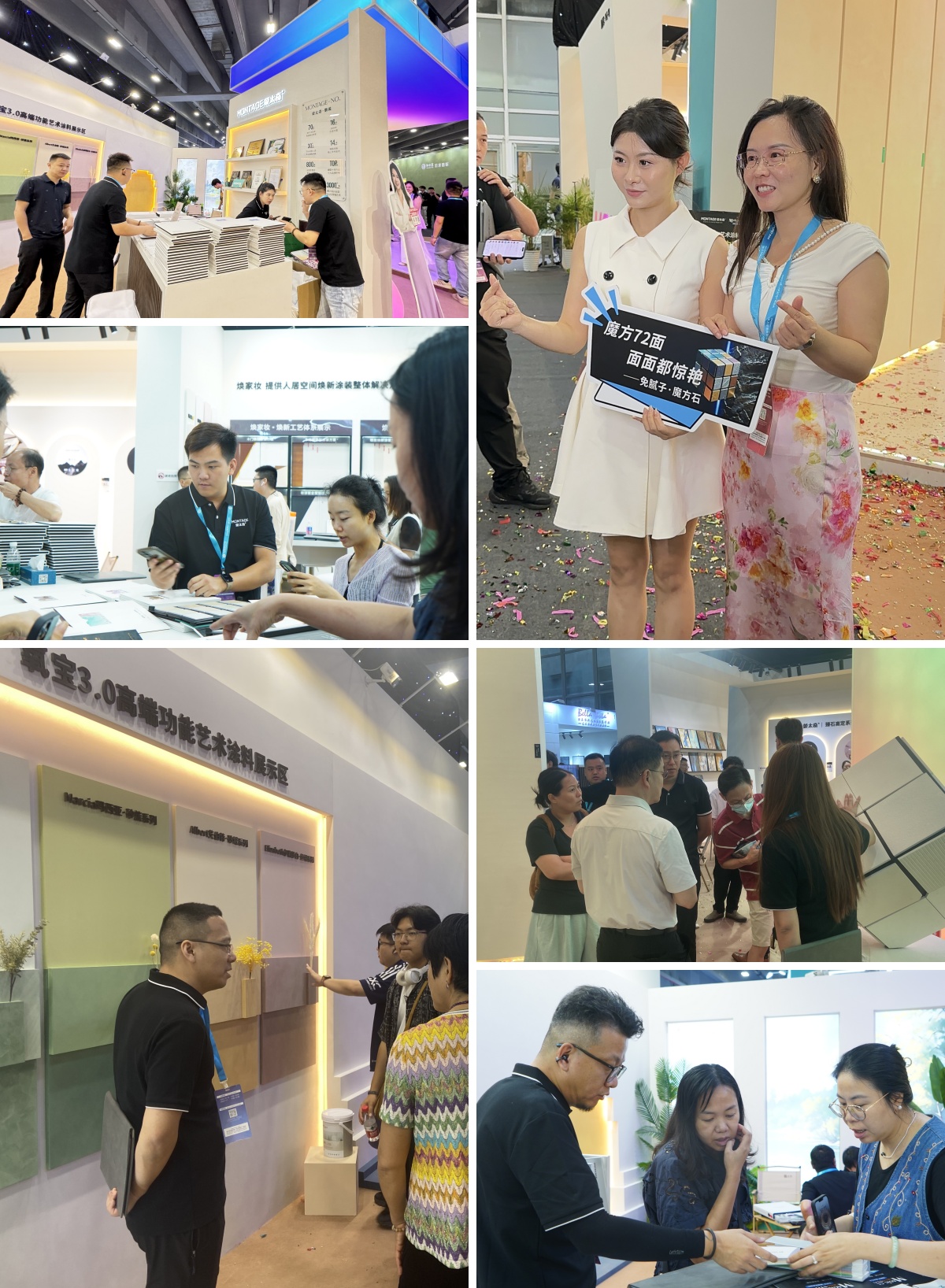 盡管面對(duì)行業(yè)整體遇冷的局面,蒙太奇仍在每個(gè)區(qū)域設(shè)專(zhuān)人講解,耐心詮釋產(chǎn)品理念,傳遞蒙太奇服務(wù)態(tài)度,向客商朋友們講解產(chǎn)品及全新賦能計(jì)劃,多角度全方位的營(yíng)銷(xiāo)幫扶計(jì)劃。蒙太奇憑借品牌實(shí)力、產(chǎn)品創(chuàng)新力、全程保姆式幫扶和專(zhuān)屬招商政策等,成為場(chǎng)館人流最火爆的展位,眾多意向新商、國(guó)際來(lái)訪客商,紛紛表達(dá)了強(qiáng)烈的合作意愿,展廳洽談區(qū)始終保持高流量,現(xiàn)場(chǎng)加盟咨詢火爆,簽約不斷,四天共簽單40單,在此不利的行業(yè)環(huán)境下,這一成績(jī)實(shí)屬難得,為2025年藝術(shù)涂料市場(chǎng)注入強(qiáng)心劑。