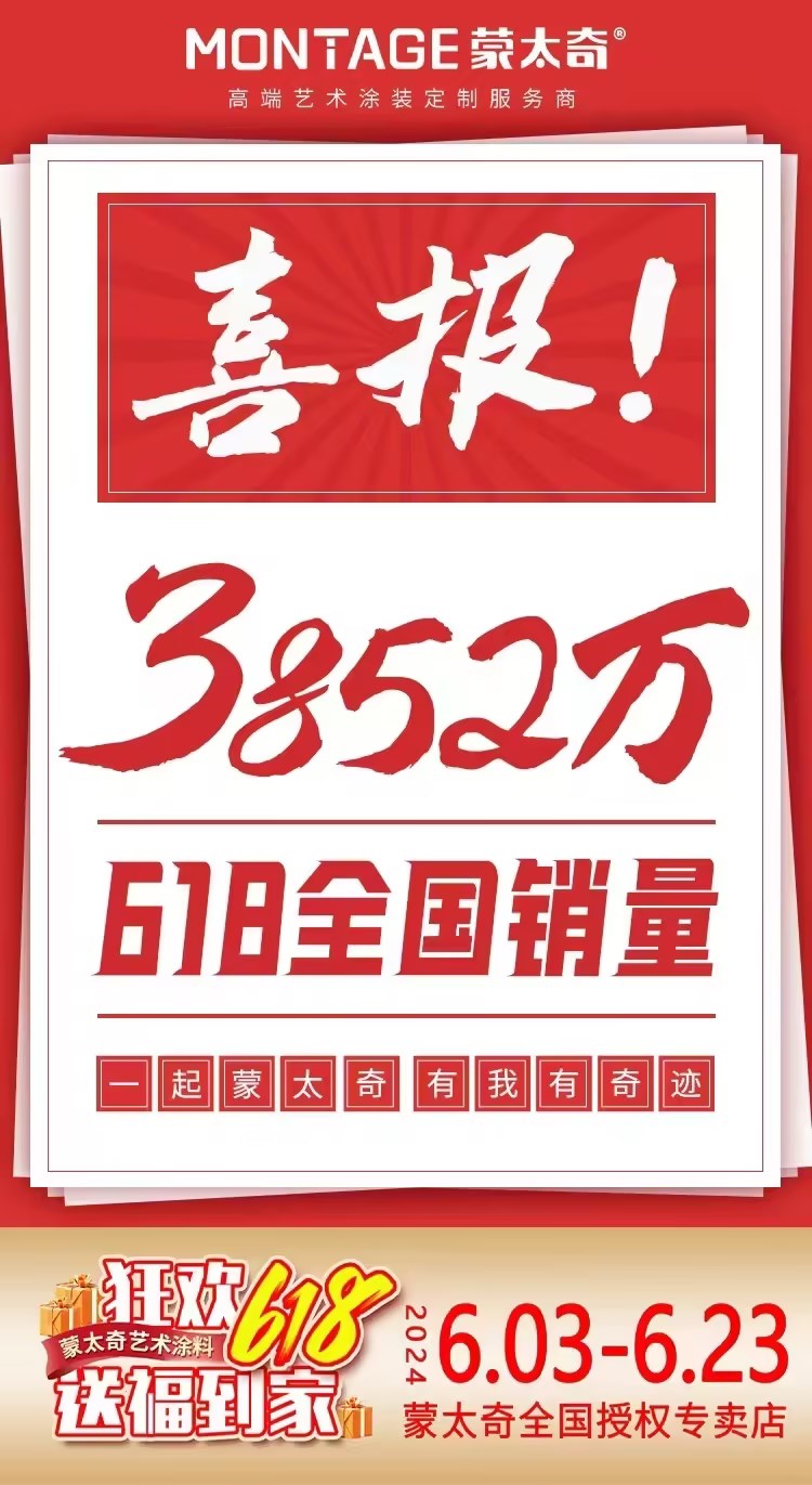 6月3日-23日,歷經(jīng)21天的激烈奮戰(zhàn),蒙太奇“狂歡618·送福到家”全國促銷活動以耀眼成績完美收官!此次活動,蒙太奇各大區(qū)門店聯(lián)動讓利,開啟火爆簽單模式,最終以3852萬的總成交額領(lǐng)跑市場,為年中沖刺畫上完美的句號。