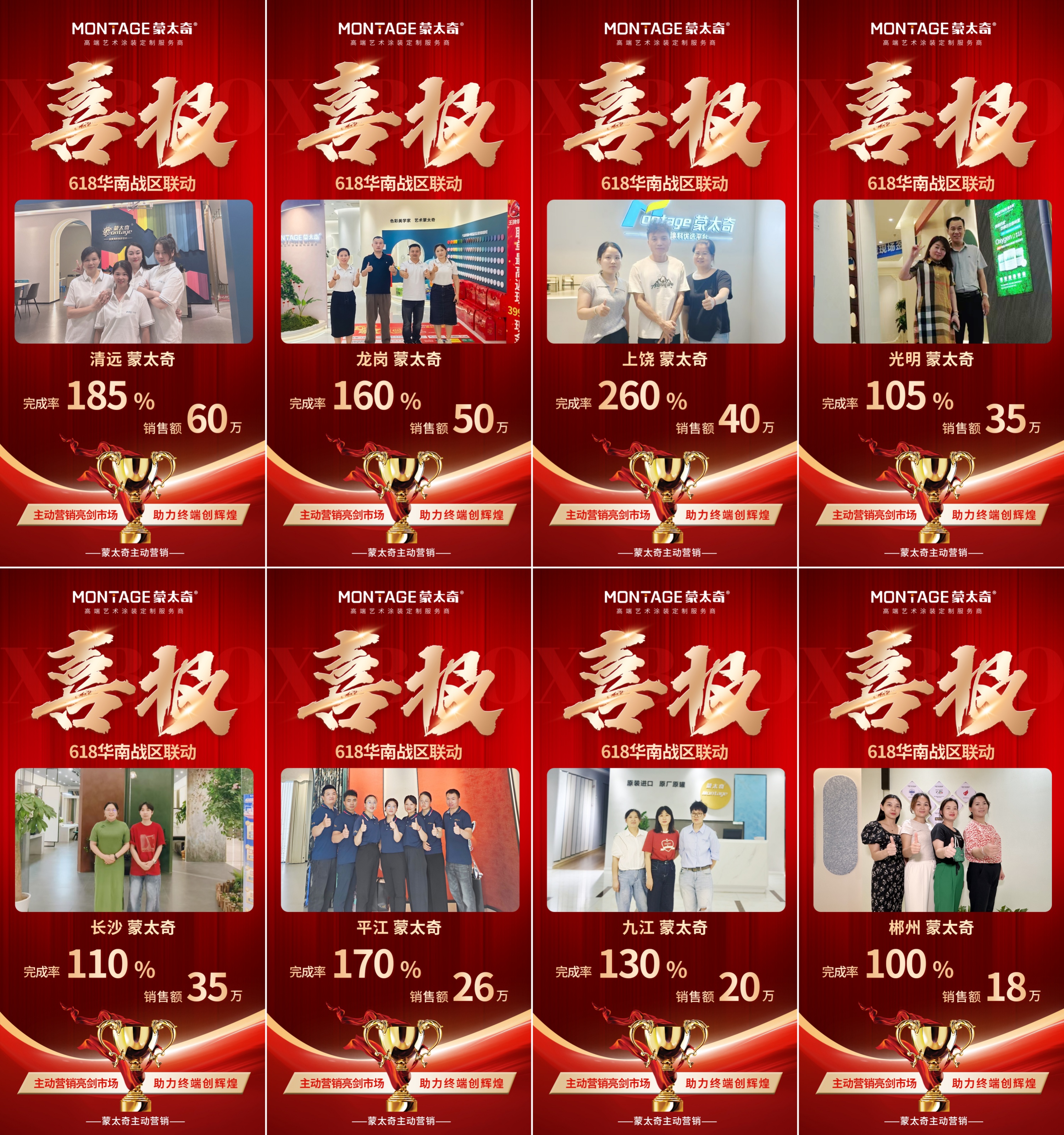在總部賦能下,清遠店、龍崗店、上饒店、光明店、長沙店、平江店、九江店、郴州店、番禺店憑借出色的綜合表現(xiàn),榮膺區(qū)域銷冠TOP9。這些標桿門店印證:面對行業(yè)下滑的周期態(tài)勢,蒙太奇正以廠商同心的強大合力,在存量市場中開辟出逆勢增長的新路徑。